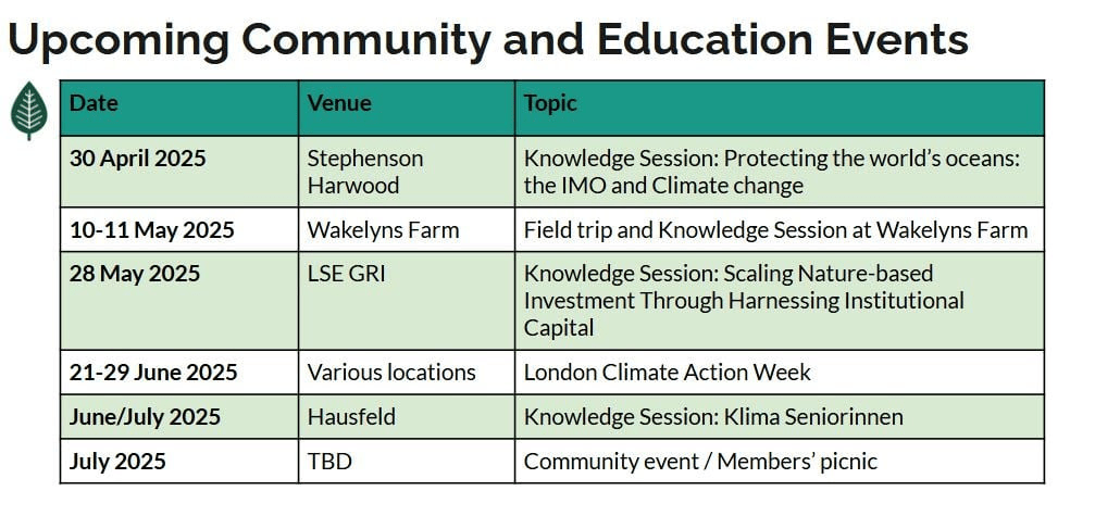 - LVF’s May knowledge session, hosted by our members Varnika Chawla and Tasha Lea, will be on scaling nature based investment through harnessing institutional capital. Details will be circulated soon!