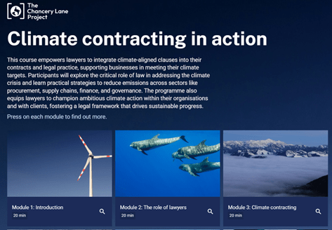 Our friends at The Chancery Lane Project have recently launched a free course on Climate Contracting. The course is designed to help legal professionals integrate climate considerations into contracts and commercial strategies.The course is 6 hours long, split into 6 modules which you complete at your own pace. The modules cover topics such as: