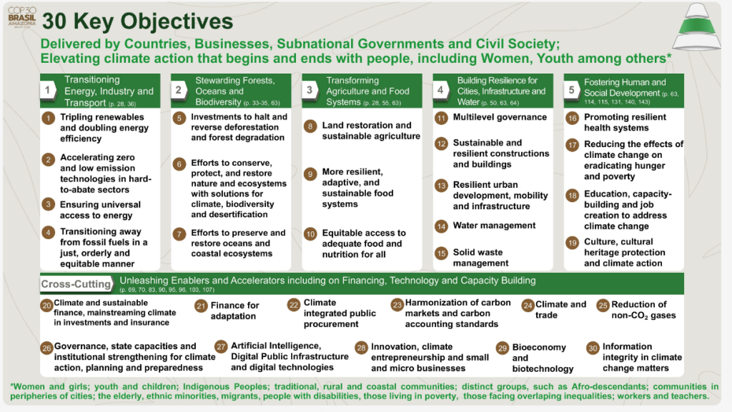 November has become a synonym of COP! This year, COP was in Belém, Brazil from 10-21 November. Aligned with the Paris Agreement Global Stocktake, COP30’s Action Agenda revolved around six thematic axes covering mitigation, adaptation and means of implementation and 20 key objectives were set: