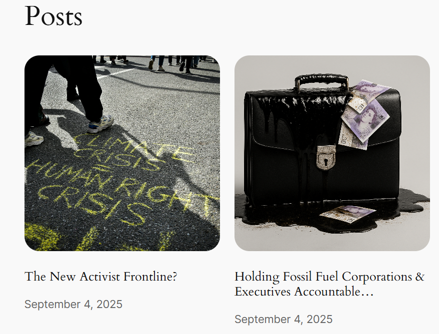 - Our latest member blog posts on ‘Holding Fossil Fuel Corporations & Executives Accountable’ and ‘The New Activist Frontline?’
